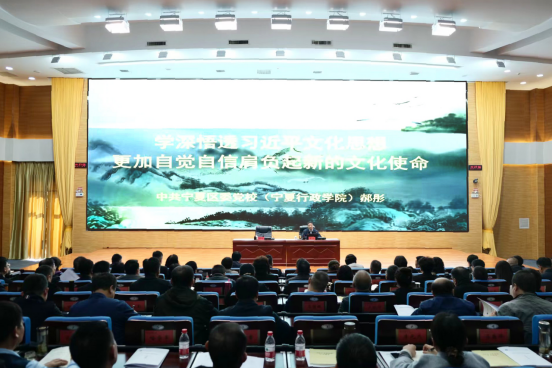 培训班上,邀请了宁夏党校(宁夏行政学院)常务副校长(常务副院长)郝彤教授作了题为《学深悟透习近平文化思想更加自觉自信肩负起新的文化使命》的专题讲座,对习近平文化思想的价值蕴含、丰富内涵和实践要求三个方面进行了全面系统地解读。