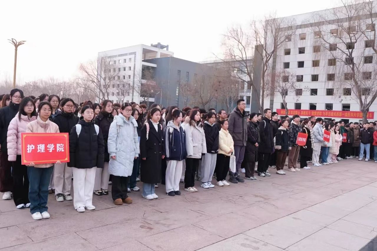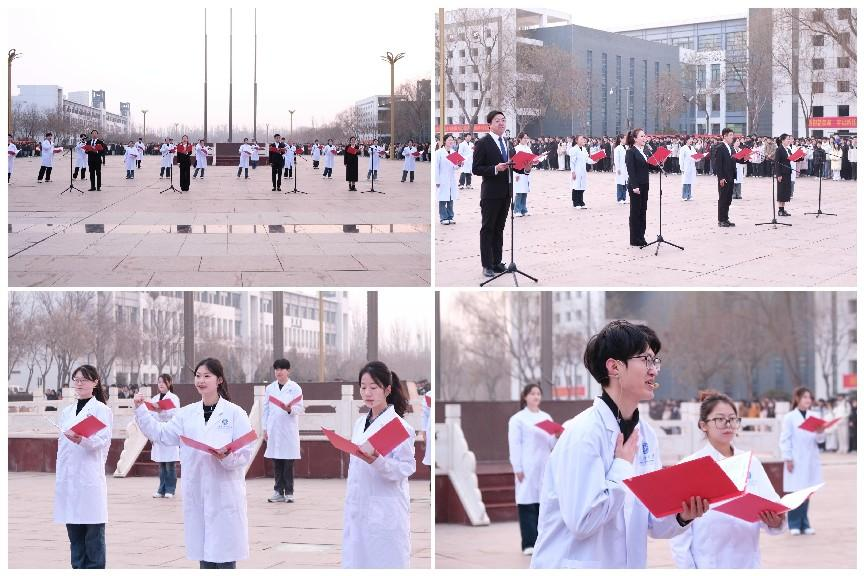 师生代表以《青春炬火,照见未来》为题进行了诗朗诵,深情述说了一代代宁医人的奋斗故事,用铿锵有力的医学生誓言表达了用青春与热血践行医学壮丽篇章的信心和决心