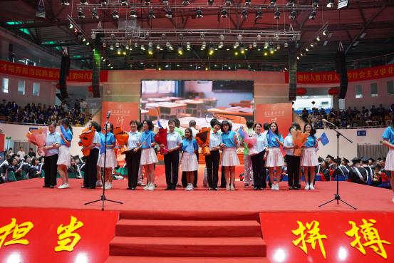 典礼在雄壮的国歌声中正式拉开帷幕,现场师生全体起立,齐唱国歌,用嘹亮的歌声表达对祖国的热爱与敬意。紧接着,悠扬的校歌《雁湖情》缓缓响起,熟悉的旋律唤起毕业生们在校园的点滴回忆,传递出深深的母校情怀。