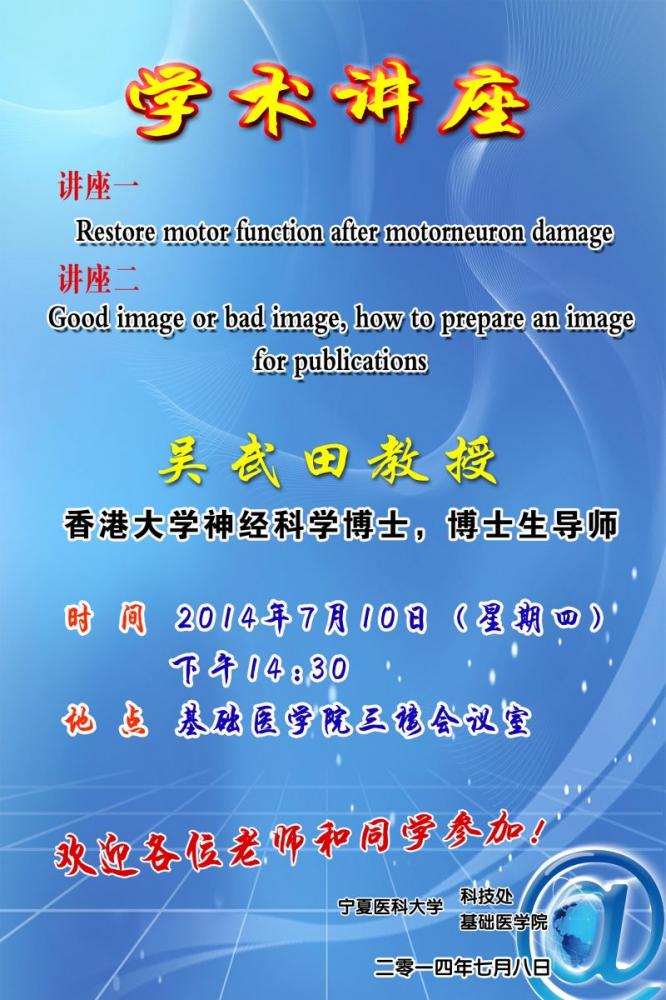 学术讲座:Restore motor function after motorneuron damage--吴武田教授