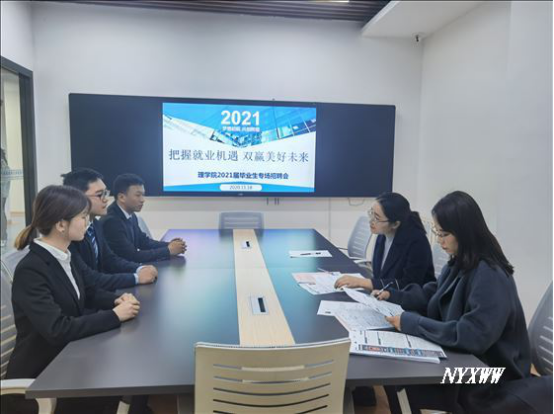 11月18日,理学院在创新创业园三楼会议室组织“把握就业机遇,双赢美好未来”2021届毕业生首场专场招聘会。宁夏卫宁健康科技有限公司何静一行4人,学院领导、辅导员以及全院学生参加此次活动。
