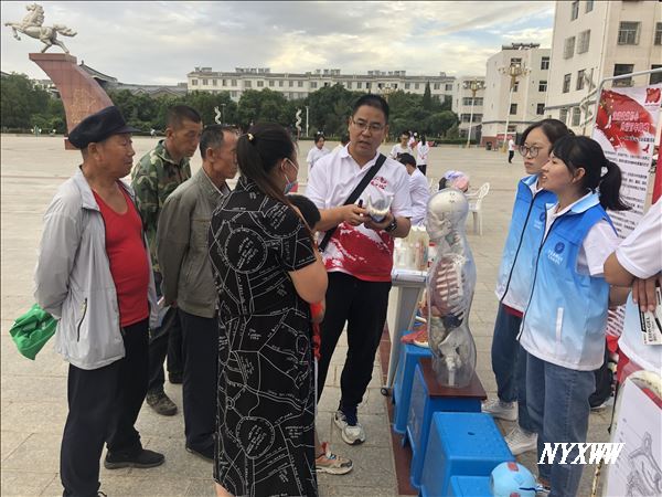 实践团在盐池县万人广场举办了“追溯建党初心 共话百年辉煌”红色文化节目展演活动,52名师生精心准备、同登舞台,为当地群众呈现朗诵、歌曲、舞蹈、演讲等形式多样的“四史”专题节目,共同回顾党的光辉历程、歌颂党的丰功伟绩。活动现场,队员们还带领当地少年儿童开展了“共绘红色画卷,传承红色童心”红色主题绘画活动,围绕《红色文化对城市个性的影响》、《家庭经济来源情况》等面向当地群众进行了“感党恩 知国情 共奋进”主题调研实践活动,发挥专业特长为群众开展了包括血压、血糖测定等内容的小型义诊活动。同时,利用学院生命科学馆标本,进行人体器官标本和“吸烟的危害、腰椎间盘突出”等常见疾病相关知识的讲解,积极向群众宣传“关爱生命,护佑健康”的健康理念。师生们还到宁鑫生态牧场开展了“滩羊创造财富 劳动铸就幸福”参观实践活动,认识并体会了“科技兴农”的魅力和意义,以及走访参观了盐池县武警县中队和盐池县巨玫瑰葡萄种植基地,共同参与葡萄采摘与品尝,感受了新农村的建设与发展。