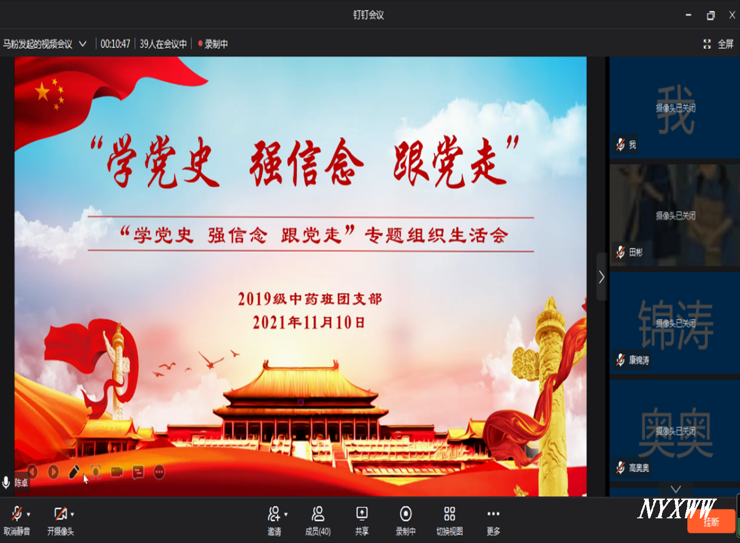 11月8日至11日,药学院各党支部围绕“疫情防控见初心,党员先行担使命”“如何上好网课”“班级如何促学风”等主题开展了为期一周的线上主题党日和主题团日活动。