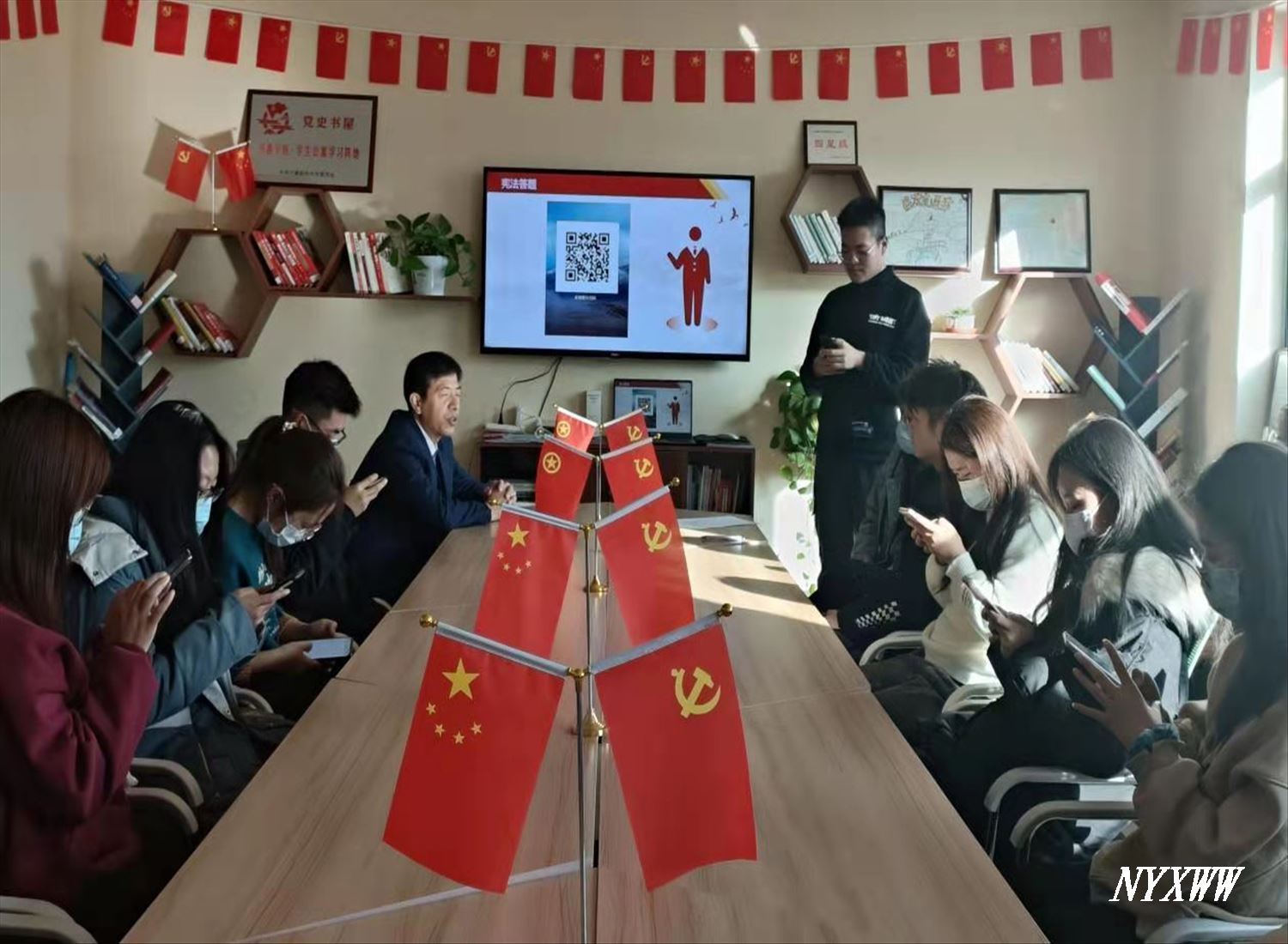活动中,公寓党支部学习了宪法的基本内容,全体参会人员诵读宪法部分条例。在“法律名称知多少”游戏答题环节,全体参会人员就我国现行有效的法律名称进行竞答,加深了大家对法律名称的了解。通过关注“宁夏法治”公众号参与“知法守法与法同行”宪法知识有奖竞答,进一步强化了同学们对宪法知识的掌握。