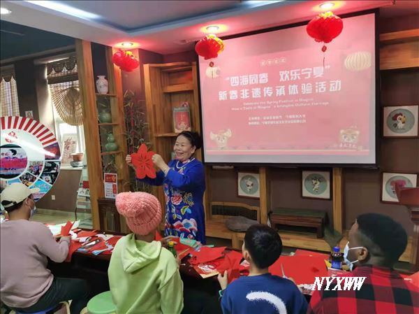 1月26日,国际教育学院组织留学生牵手在校小学生一行40余人来到伏兆娥剪纸研学基地,参加了由自治区教育厅主办的“四海同春欢乐宁夏”新春非遗传承体验活动。
