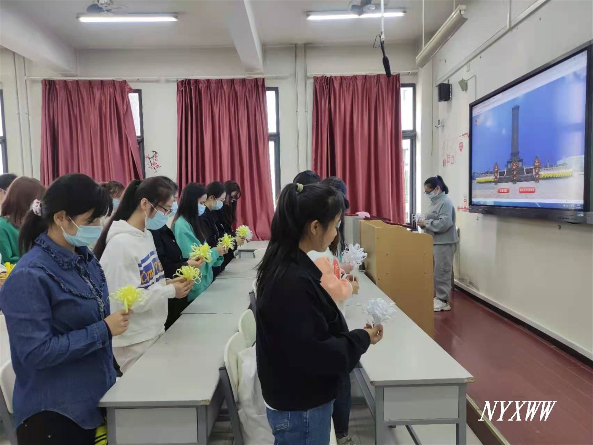 活动中,同学们通过网络平台,了解革命先烈事迹,深刻感受到英雄已逝,全体同学怀着沉痛的心情为英雄烈士默哀三分钟,愿逝者安息,生者奋发。活动期间,2018级预防班的同学们在“生命之柱”前敬献手工制作的花束,为逝去的生命挚以最深的敬意,也为他们献上了自己最真挚的悼念。