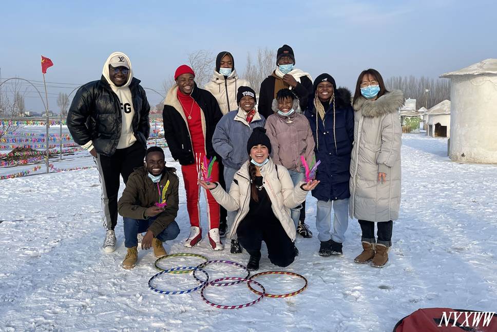 留学生们积极参加了雪地企鹅、动感五环、雪地“救援”等趣味运动。现场气氛热烈,欢声笑语,呐喊声、助威声此起彼伏,留学生们耐严寒、练体魄,尽情享受了冰雪运动的快乐,体验了冰雪乐趣,感受了中国传统年俗,为北京冬奥助威。