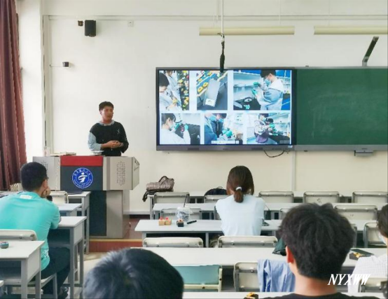 学院副院长文友民、与会教师为每位学生们赠送中医学院大学生创新创业产品——含中药提取成分的口红“甘语”。该项目研发团队主要参与者杨洋、宗涛同学分享了依托“挑战杯”“互联网+”竞赛平台,研发产品的全过程,号召同学们积极加入到创新创业中来,一起崇尚科学、追求真知、勤奋学习、锐意创新、迎接挑战,成为勇挑时代重担的新时代青年。茆春阳老师介绍了“互联网+”等创新创业比赛的竞赛要求、赛事章程及历年成绩,鼓励大家要勇于尝试,不要害怕失败,要将所学所思所想融入生活,展现新时代青年学生的科创智慧和风采。