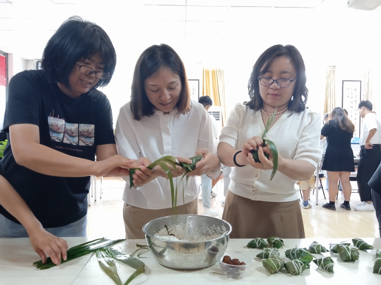 活动中,老师与同学们一起包粽子。叠粽叶、填糯米、放蜜枣、系绳子,同学们一张张粽子叶、一勺勺五彩米、一颗颗蜜枣在师生的巧手下变成了一个个香糯可口的粽子。在包粽子的整个活动过程中充满欢声笑语,同学们尽情享受着包粽子带来的乐趣,感受着中国传统节日的独特魅力。