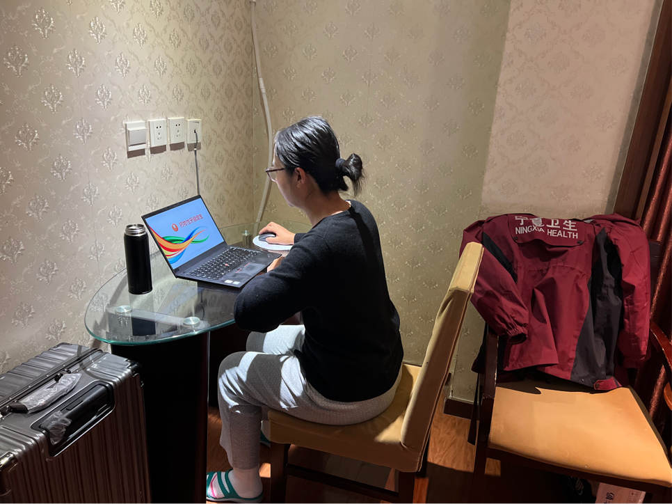 口腔医学院教学办主任杨长怡老师便是其中一员。深夜,当她接到支援其他地区的通知之后,便简单收拾随身物品,第一时间奔赴疫情防控第一线,进行核酸采集工作。同时,杨长怡老师也担任着重要的教学任务,在与各班级协商上课时间后,她不顾疲累,利用休息时间为同学们讲授《牙周病学》,保质保量完成线上教学任务。