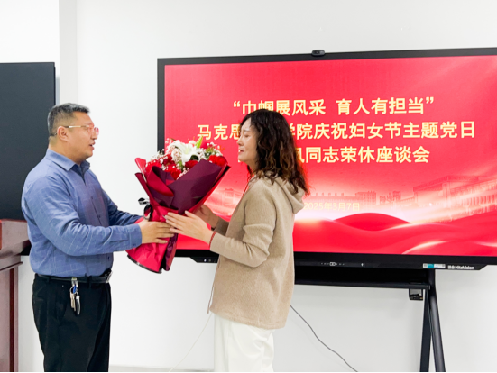 3月7日下午,马克思主义学院在雁湖校区知行楼318会议室开展“巾帼展风采 育人有担当”主题党日暨牛银凤同志荣休座谈会,学院全体教职工参加。会议由学院党总支书记张云飞主持。