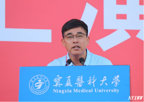 姜怡邓代表学校全体师生,向新同学表示欢迎和祝贺,向学生家长、指导老师及军训教官致以诚挚的感谢。他希望同学们能“胸怀家国,精医济世”。要成为一名合格的医学人才,最重要的一点就是要心怀“国之大者”,将家国情怀融入精医仁心,彰显在民众危难之时。在未来的人生选择上,能把个人志向、发展追求融入国家需要的星辰大海,始终与国家前途、民族命运同向同行,去谱写宁医精神的崭新篇章。他希望同学们能“追求卓越、矢志创新”。要由局部趋于整体、由传统趋于创新、由独立趋向融合,在不同的学习阶段,都要不断锤炼创新能力,敢于突破体系,打破常规,勇于创新,在新技术变革大潮中划出属于自己的事业之桨。他希望同学们能“修身立德,执着坚守”。 要以榜样的力量鞭策自己,刻苦学习医学知识,深刻领会健康理念,时刻践行医学人文,提升从医温度。以根植内心的善良丈量医者仁心,以精湛医术践行医学生誓言,除人类之病痛,助健康之完美。他勉励新同学们不负韶华,不负时代,不负党和人民的殷切期待,以实现中华民族伟大复兴为己任,做胸有家国、追求卓越、矢志创新的宁医人。