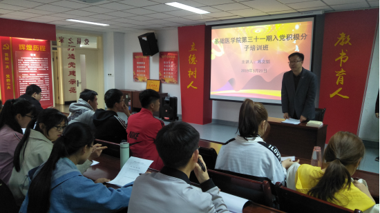 为深入学习贯彻习近平新时代中国特色社会主义思想和党的十九大精神,进一步加强我院基层党组织建设,培养一批坚定的青年马克思主义者,基础医学院分党校于3月18日至24日联合理学院举办了第三十一期入党积极分子培训班。有本、硕、博三个学历层次124名学生参加了此次党课培训。