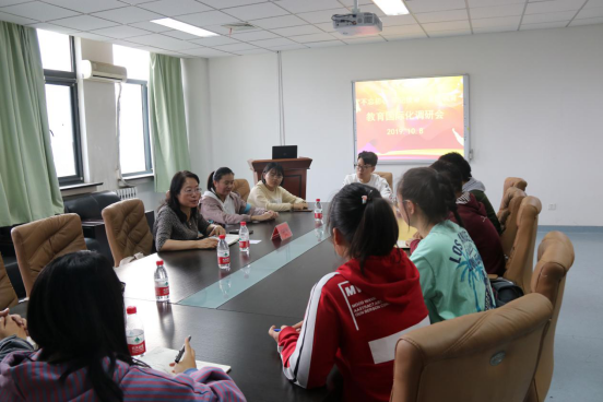 下午,郝银菊副校长一行到学院进行“不忘初心,牢记使命”主题教育教育国际化专题调研。分别与访学交流的教师和学生进行了座谈。