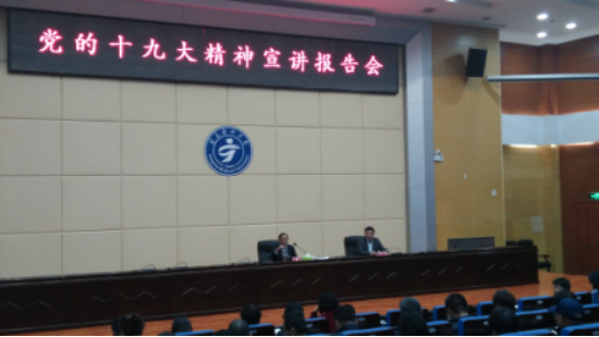 报告会上,孙涛校长结合自己学习十九大精神的心得体会,紧扣十九大报告原文,围绕中国特色社会主义进入新时代、习近平新时代中国特色社会主义思想、实现第二个百年奋斗目标的战略部署、我国社会主要矛盾变化的新概括、新时代党的建设的新要求,即新时代、新思想、新战略、新概括、新要求5个方面,对十九大精神作了全面解读。宣讲报告主题鲜明、内容丰富、深入浅出,既有透彻的理论阐述,又有很多生动的实例,并与师生现场互动,解答疑问。同时孙涛校长对学院的重点工作和学科发展提出了新的思路和要求。现场师生认真聆听,并报以热烈的掌声。