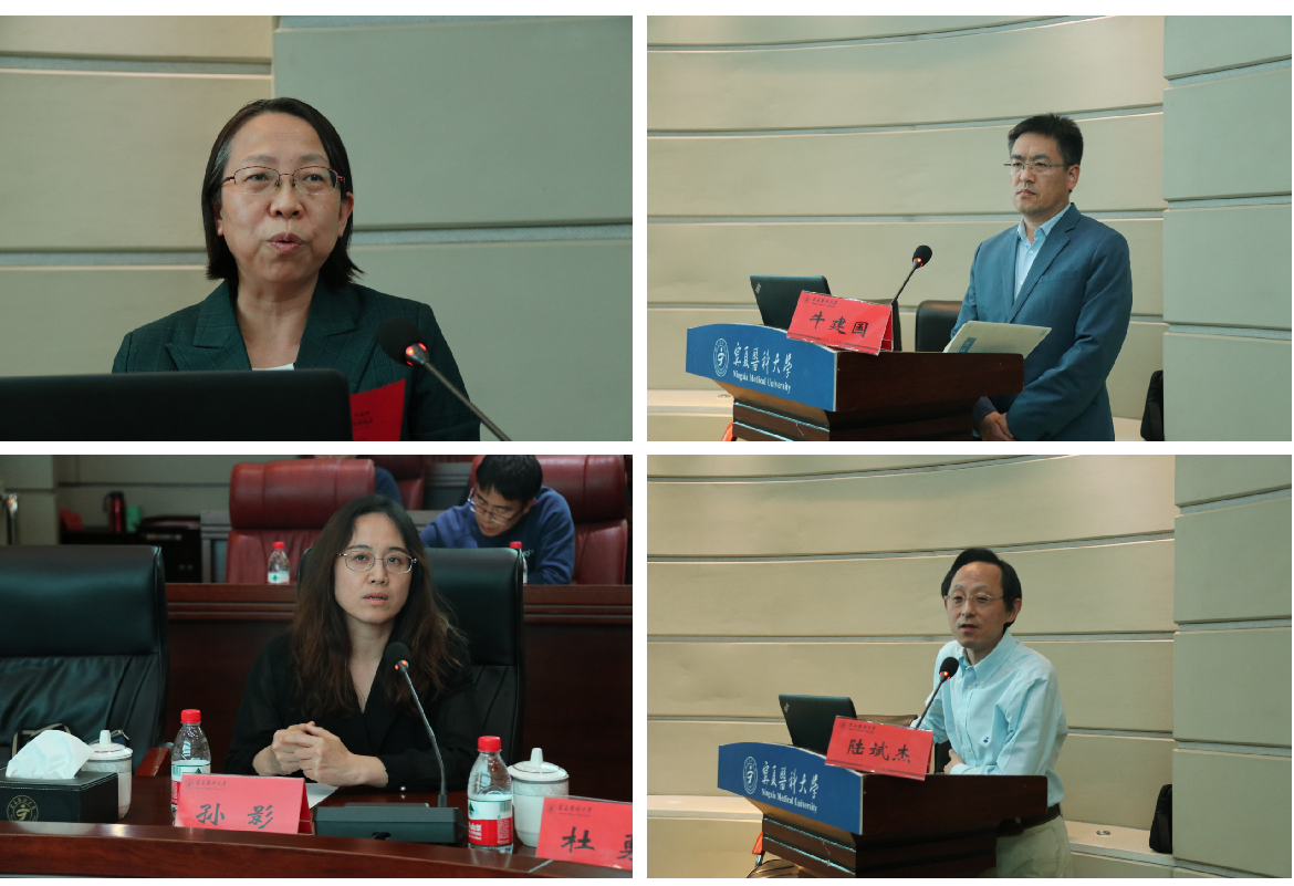 会上,基础医学和临床医学国家级实验教学示范中心进行了工作汇报。孙影教授和陆斌杰教授分别作了以“《病理学》金课建设与实践”“医学模拟教育在住院医师规范化培训中的应用现状与前景”为题的专题讲座。与会人员与各位专家进行了充分的沟通和交流。