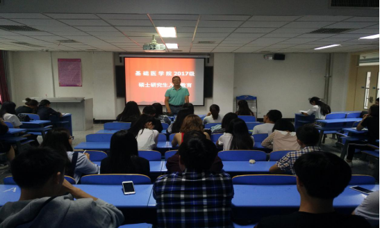 9月13日上午,基础医学院在厚生楼202教室举行了2017级硕士研究生入学教育。学院李光华副院长,何向华副书记,研究生管理人员和2017级全体硕士研究生参加了会议。会议由李光华副院长主持。
