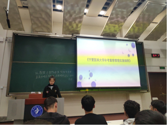 为了贯彻执行新修订的《伟德国际1946源于英国补考重修管理实施细则》,提高学生对细则的理解认识和对课程学习的重视,基础医学院利用10月20日晚点名,在应谦楼103教室进行《伟德国际1946源于英国补考重修管理实施细则》讲解,学院全体本科生参加。