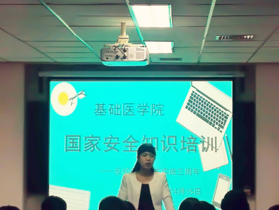 为进一步宣传、贯彻、落实《国家安全法》和《反间谍法》,增强广大学生维护国家安全意识和反间谍意识,在4月15日国家安全教育日下午,基础医学院在厚生楼202为全体本科生开展了《国家安全法》、《反间谍法》等国家安全知识的学习培训。
