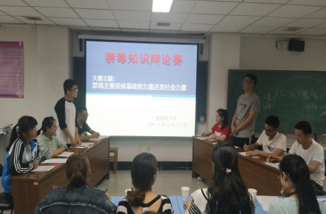 为响应学校号召迎接“525”的到来,基础医学院“泊心苑”心理辅导站于5月20日晚在厚生楼举办以“禁毒主要是靠政府力量还是社会力量”为辩题的禁毒知识辩论赛,比赛共有4队伍参