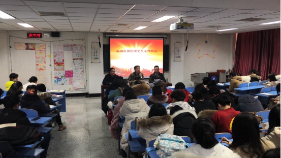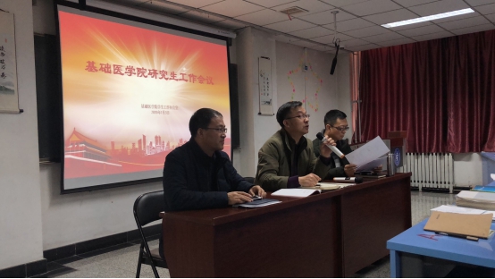 2020年1月3日,基础医学院在厚生楼召开研究生工作会议,学院领导班子周文韬、李光华、侯绍章、研究生办、专兼职辅导员以及我院全体硕博研究生200余人参加了会议。