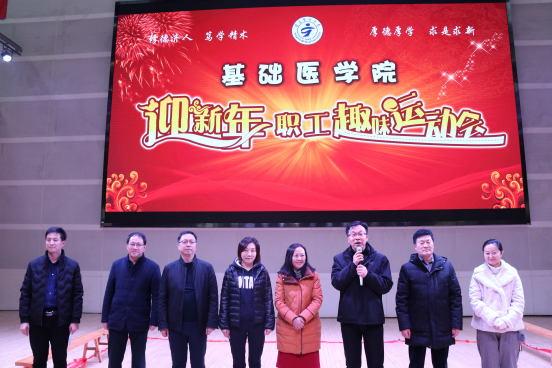 12月21日下午,在2019年新年即将到来之际,基础医学院在雁湖校区弘毅体育馆举行“迎新年教职工趣味运动会”。学校工会主席陕秀琴、学院领导班子及全院教职员工参加了活动,活动由学院党委副书记马立虎主持。