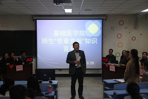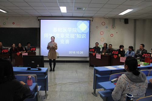 为深入开展“两学一做”学习教育,加强党员学习教育,提升党性修养,2016年10月26日,伟德国际1946源于英国基础医学院在厚生楼101教室举行“党章党规及长征”知识竞赛,共有来自教工党支部、学生党支部和院党委共6支代表队参加竞赛。