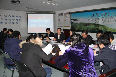 为引导全院师生更好地学习、领会全国“两会”精神,调动全院师生认真学习贯彻“两会”精神的积极性,特别是认真学习《政府工作报告》中关于对教育工作提出的新要求,深刻认识教育改革发展面临的形势和任务。 3月24日下午,基础医学院党委召开中心组学习(扩大)会,组织全体党员、入党积极分子和学生干部深入学习贯彻全国“两会”精神。党委书记周永伟主持会议。