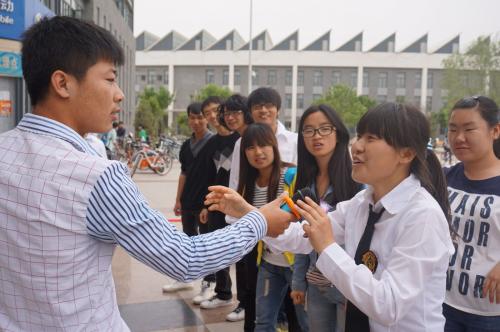 本次活动共分为四项。在开场时进行了《舞动青春》舞蹈表演,欢快的音乐响起来,队员们犹如一个个小精灵,整齐而又搞笑的动作,引来同学们的驻足和掌声;之后进行了“心有千千结”游戏,通过游戏增加了同学们之间的默契;还有“猜歌名”游戏,贴近广大同学生活,更显娱乐性,放松大家的心情;最后进行了撕名牌游戏。