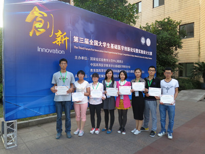 2014年10月17—19日,由国家级实验教学示范中心联席会、中国高等医学教育学会基础医学教育分会、教育部高等学校医药学科基础医学专业与课程教学指导委员会联合主办,中国人民解放军第二军医大学承办的“第三届全国大学生基础医学创新论坛暨实验设计大赛”在上海举办。经过初赛选拔,共有来自全国60多所医学类院校的344项作品进入决赛。由伟德基础医学院选送的8项参赛作品均进入决赛。经过激烈角逐,伟德代表队的8名选手以扎实的专业基础知识、活跃的创新思维、严谨的科学思辨、沉稳灵活的答辩,赢得专家评委及参赛院校师生的高度好评,取得了三等奖2项、优胜奖6项的优异成绩。