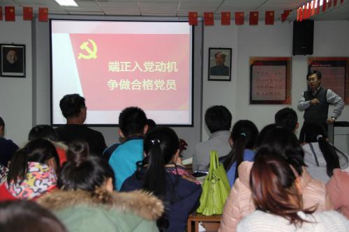 本次培训共分为两讲,第一讲,检验学院的马晓恒书记以“端正入党动机”为题,通过分析大学生入党动机不正确的因素,引导同学们正确认识入党动机,在思想上承认党的纲领和章程,在行动上努力实践,投身于社会主义,共产主义奋斗的事业。第二讲,马书记为同学们分析了正确认识和对待党员标准的重要性,并要求每位同学按照党员标准严格要求自己,全面认真的对待党员标准,坚持做到“四个统一”。