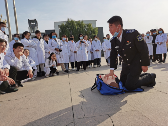 11月4日下午3:00,基础医学院国家级实验教学示范中心楼道内突然出现刺鼻气味和滚滚浓烟,警报器突然报警。正在指导学生实验的老师迅速作出反应,在查看突发火情的同时,果断向保安和学校保卫处报警并向学院领导汇报,并立即组织楼内所有人员紧急疏散撤离至安全地带。随后,消防警官的对受伤人员进行了心肺复苏抢救示范。参演师生现场体验了使用灭火器赴灭明火的方法和过程、并对如何穿戴消防服及灭火设施的使用进行了现场培训。此次演练活动在实验中心党支部书记周永忠与学校保卫科杨俊康科长为主要策划人的密切协作和配合下共同实施了这次演练活动。为保证此次活动的顺利进行,实验中心党支部于11月3日举办了专题培训会,基础医学院党委书记周文韬及副书记马立虎参加了此次培训会。
