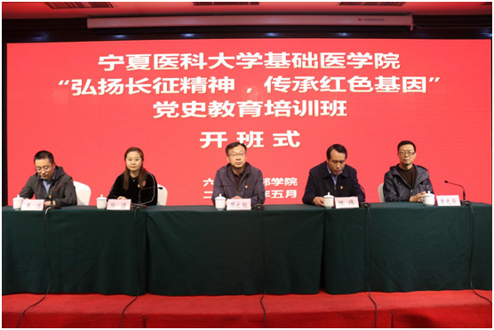 开班仪式上,基础医学院党委书记周文韬从“学史明理,读懂革命初心,筑牢信仰之基;学史增信,践行宗旨初心,传承红色之魂;学史崇德,升华使命初心,凝聚精神之力;学史力行,砥砺知行初心,激发奋进之力”四个方面强调了开展好此次党史学习实践教育的目的和意义。为确保此次活动取得实效,他强调了三点要求:一是提高思想认识,把此次活动作为党史学习教育的有效内容;二是发扬长征精神,持之以恒走好新的长征路;三是践行党的宗旨,不忘初心传承好红色基因。六盘山干部学院陈燕教授做了《中国共产党的百年奋斗历程和庄严使命》的专题讲座。