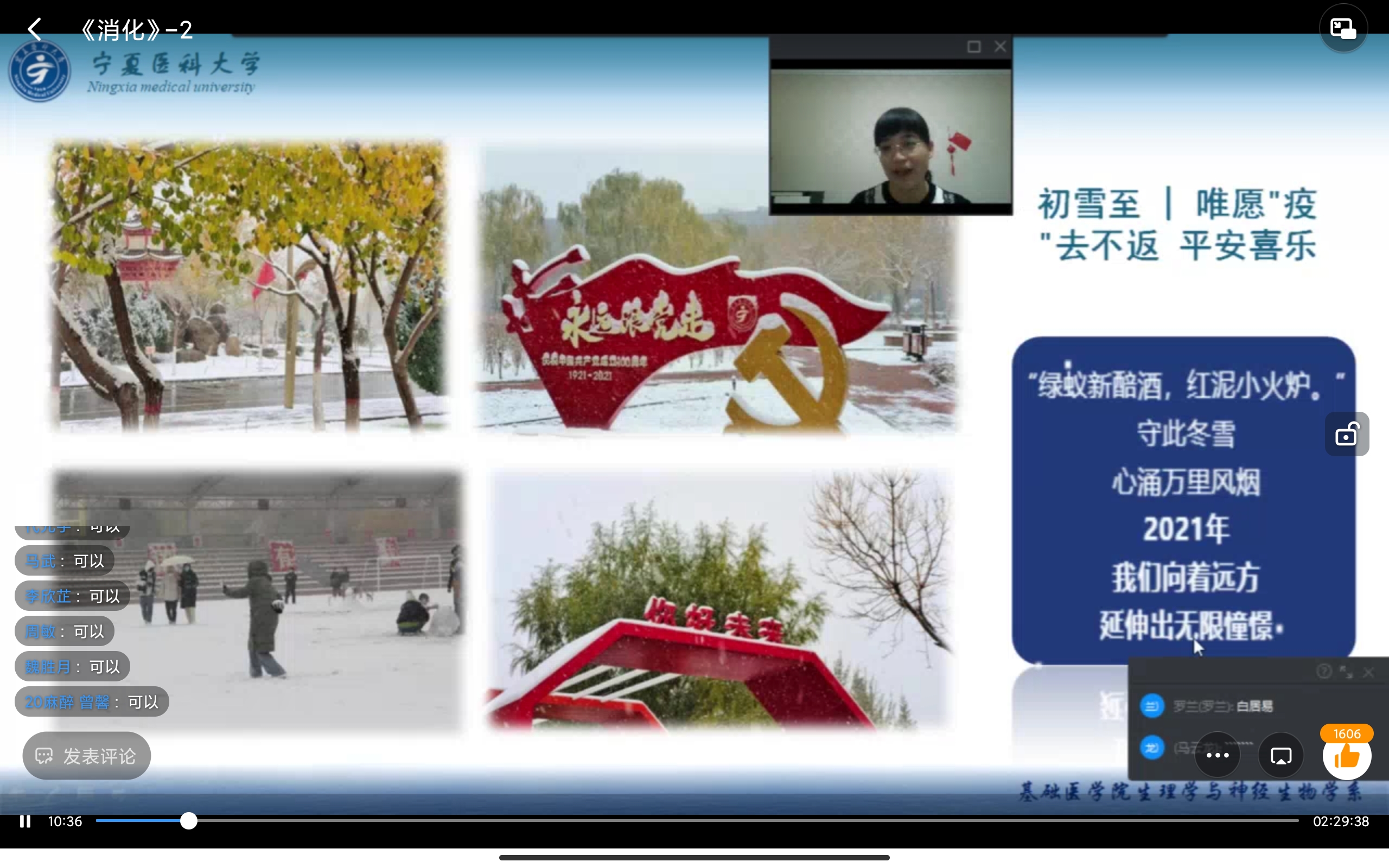 一场疫情,既是挑战,又是机遇,把握线上教学平台,提升自我,焕发灵思。冬寒雪冷终将逝,春暖花开即有时!基础医学院全体教师用行动展现教师的责任与担当,用爱与真诚守护学生的成长。愿所有的等待不负归期,愿所有的美好如约而至!