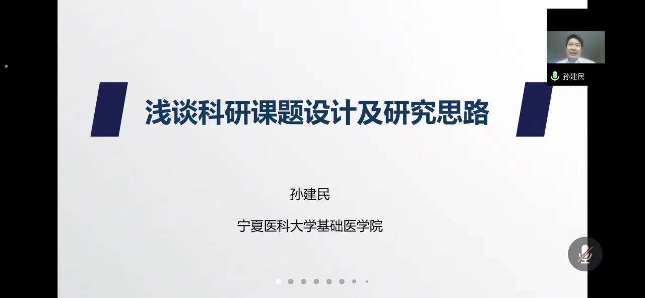 5月25日上午,基础医学院“厚生论坛”第三讲通过腾讯会议在线举行,病理生理学系副主任孙建民教授为与会师生作了关于“浅谈科研课题设计及研究思路”的学术讲座,全校100余位师生参加了本次“云”上活动,会议由基础医学院王浩副院长主持。