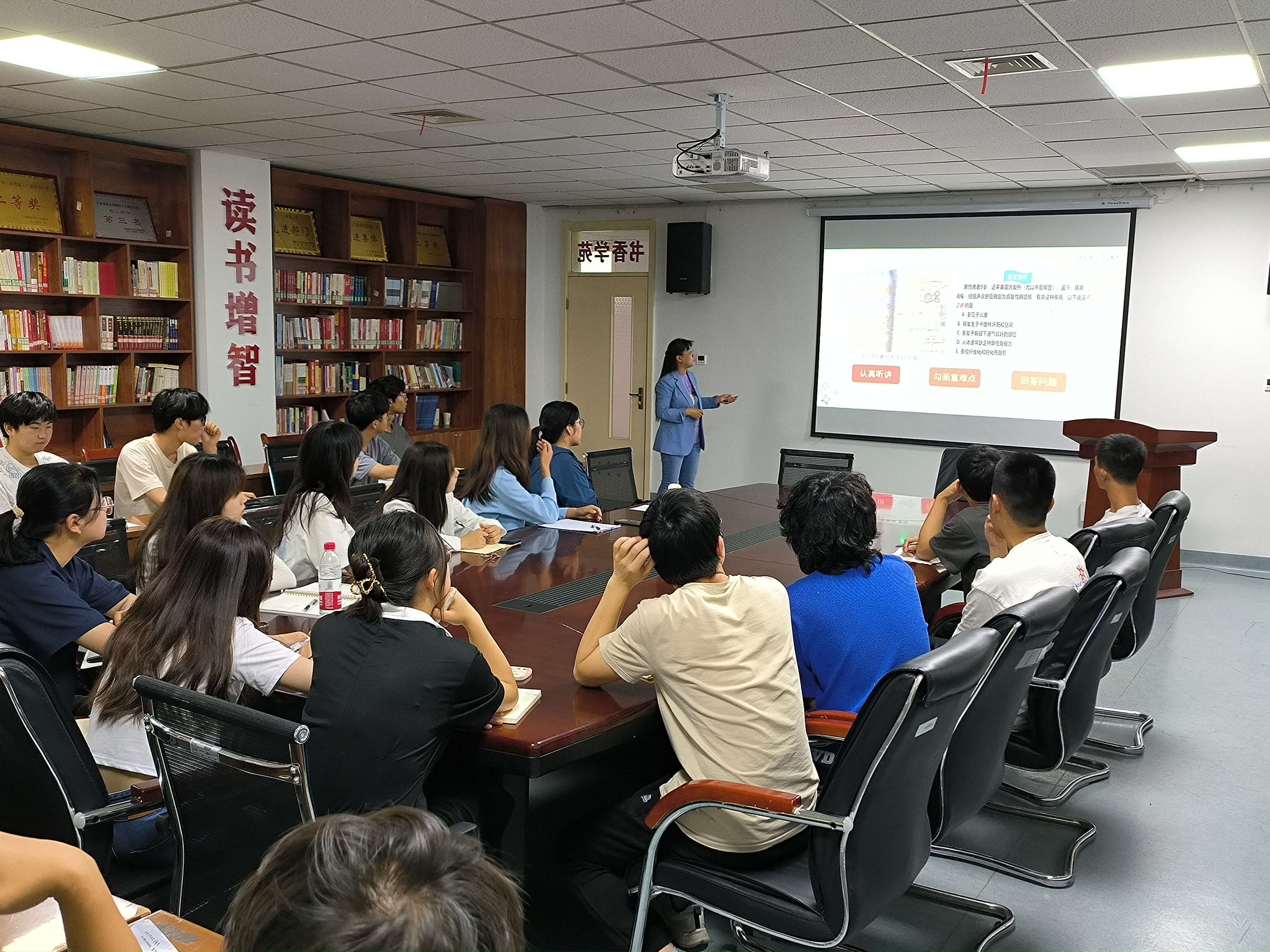 为推动学习贯彻习近平新时代中国特色社会主义思想主题教育走深走实,进一步加强和改进2022级基础医学班学风建设,6月8日上午,基础医学院党委副书记张艳丽、优秀学长高强同学在厚生楼书香学苑为2022级基础医学班全体同学开展学习经验分享交流会。