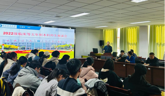 为进一步提高人才培养质量,切实践行“以学生为中心”的理念,深入了解学生的学习状态及需求,11月17日中午,生理学与神经生物学系在厚生楼党员之家组织召开师生座谈会。会议由学系副主任彭涛主持,基础医学院副书记卢晓华、系主任王银及全体教师、2022级临床医学、预防、口腔、麻醉、影像、儿科、基础医学专业等60多名本科生代表参加。