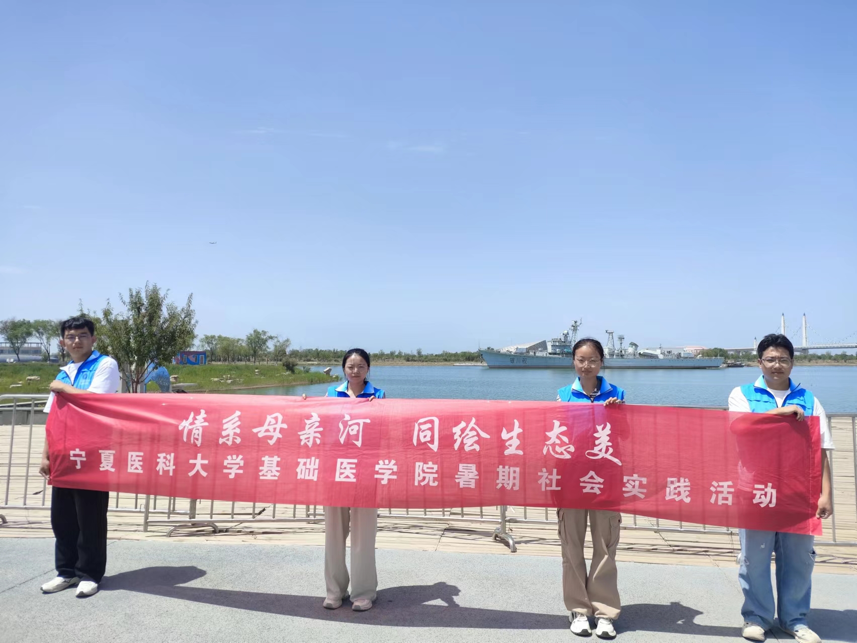 为深入学习贯彻习近平新时代中国特色社会主义思想、党的二十届三中全会精神和习近平总书记考察宁夏重要讲话精神,引导广大青年学生投身生态文明建设,基础医学院水润乡情实践队6名成员于7月21日至7月28日前往宁夏银川市、吴忠市利通区、青铜峡市开展“情系母亲河,共绘生态美”暑期社会实践活动。