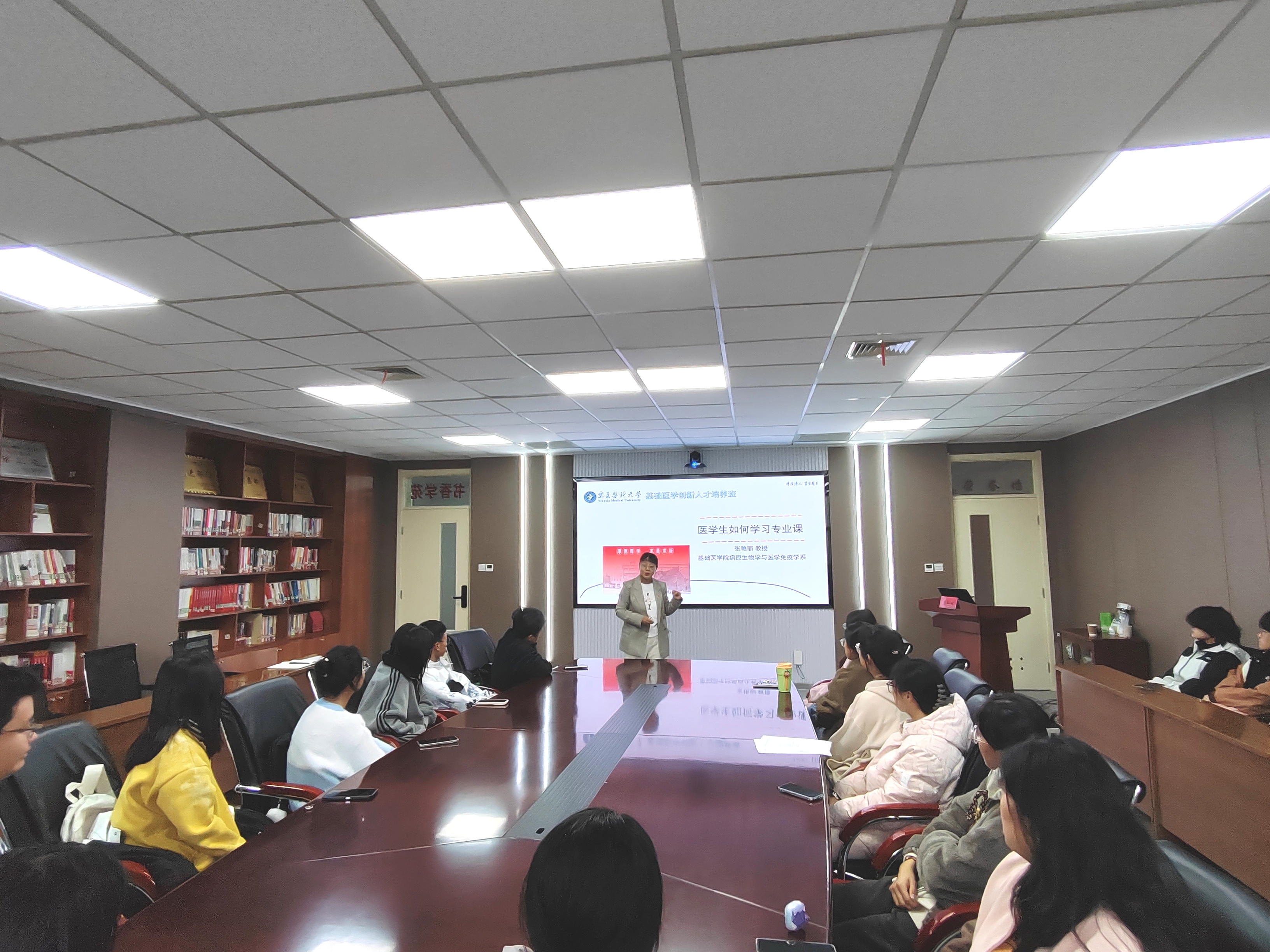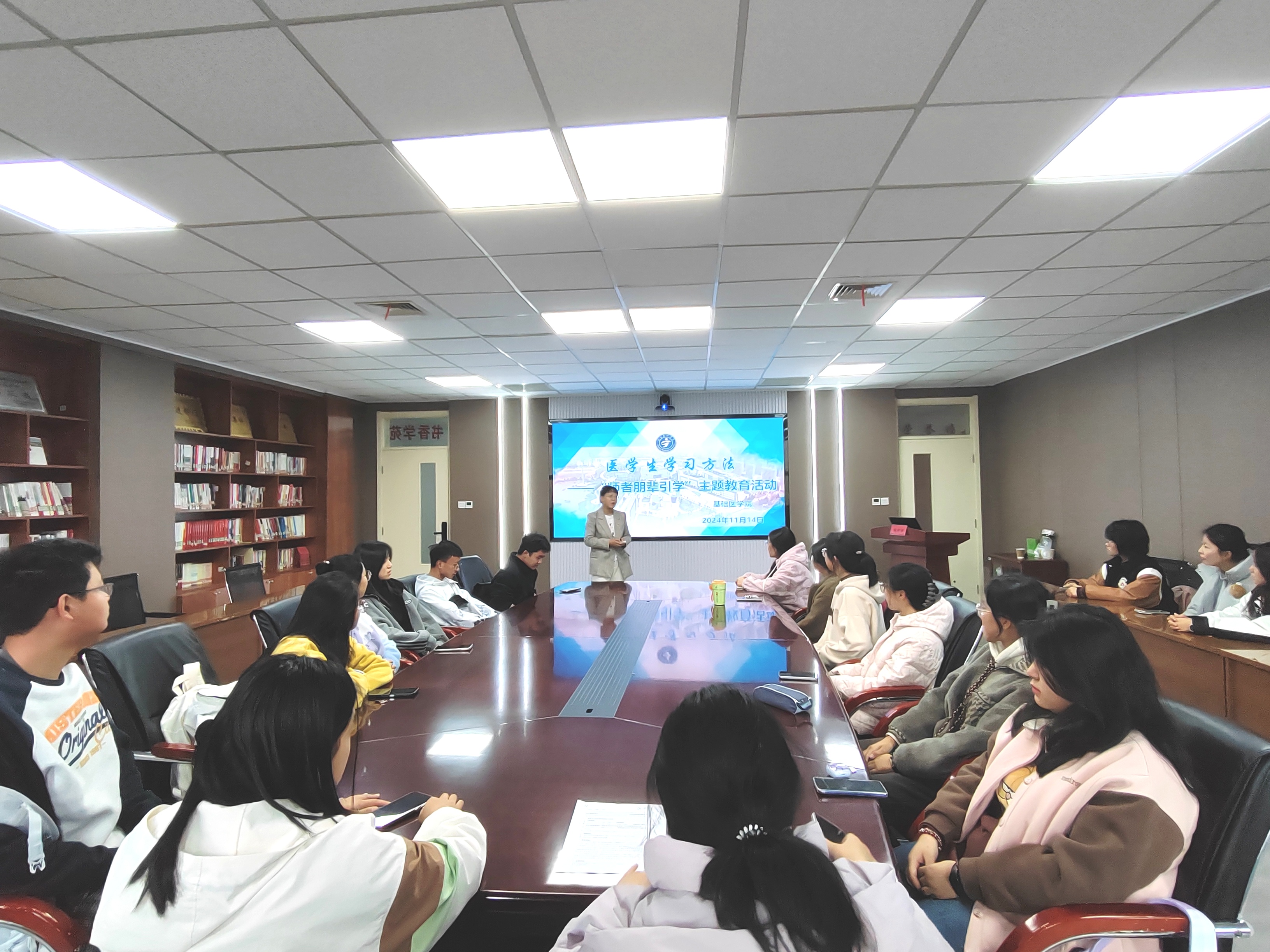 2024年11月14日基础医学院在厚生楼书香学苑举行了医学生学习方法——“师者朋辈引学”主题教育,旨在帮助新生更好地适应大学生活,制定合理的学习计划,高效地掌握知识,增强学习兴趣,提高动力。本次活动由张艳丽副书记主讲,2024级基础医学班全体学生参加。
