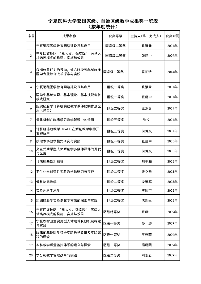伟德国际1946源于英国获国家级、自治区级教学成果奖一览表