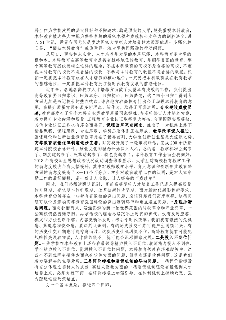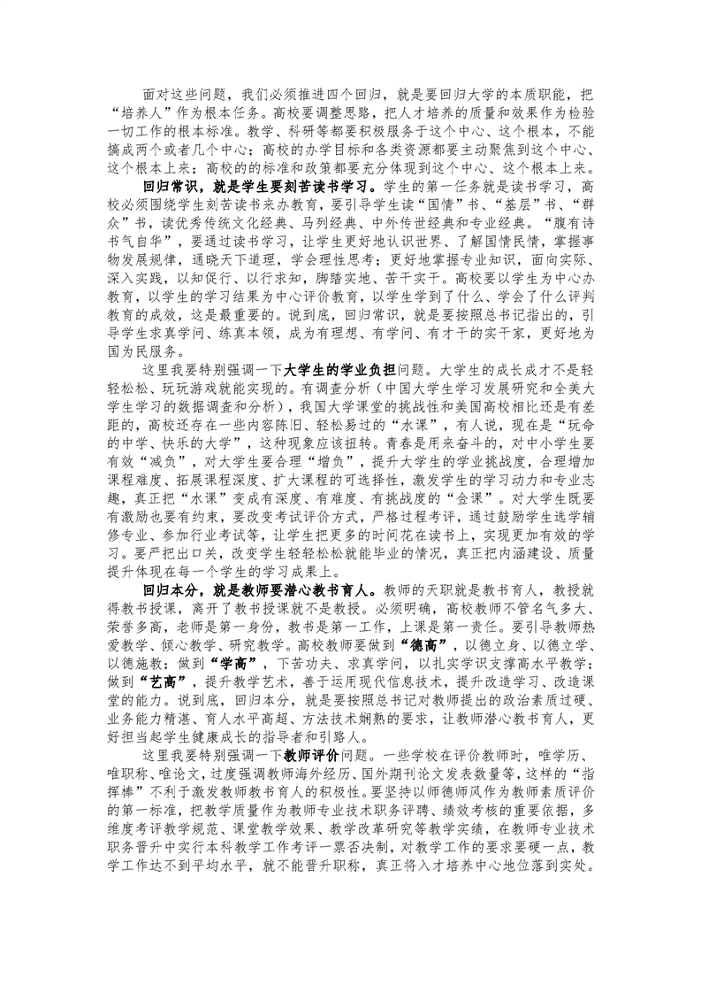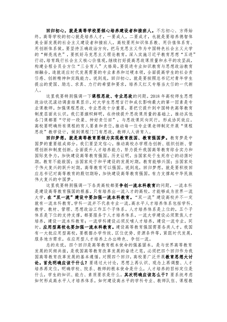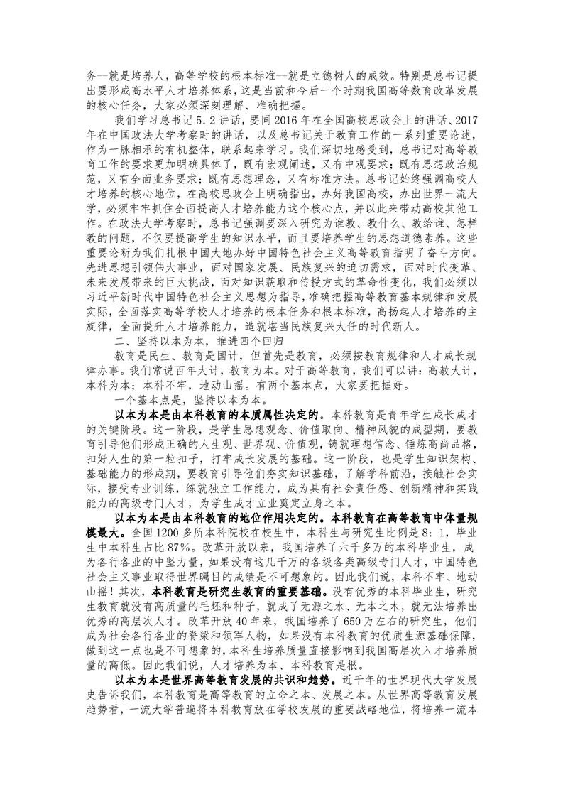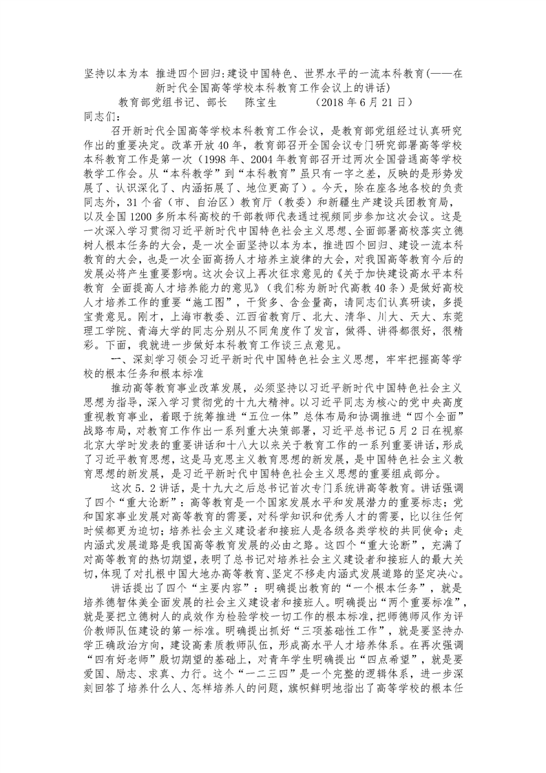 坚持以本为本,推进四个回归:建设中国特色、世界水平一流本科教育