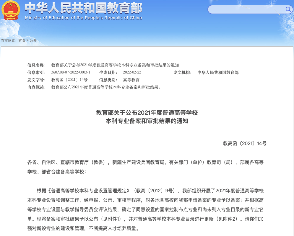 近日,教育部印发《关于公布2021年度普通高等学校本科专业备案和审批结果的通知》,伟德申报的“医学信息工程专业”正式获批。至此,伟德专业总数达到21个,专业所涵盖的学科门类在原有的医学、理学、管理学基础上新增工学。