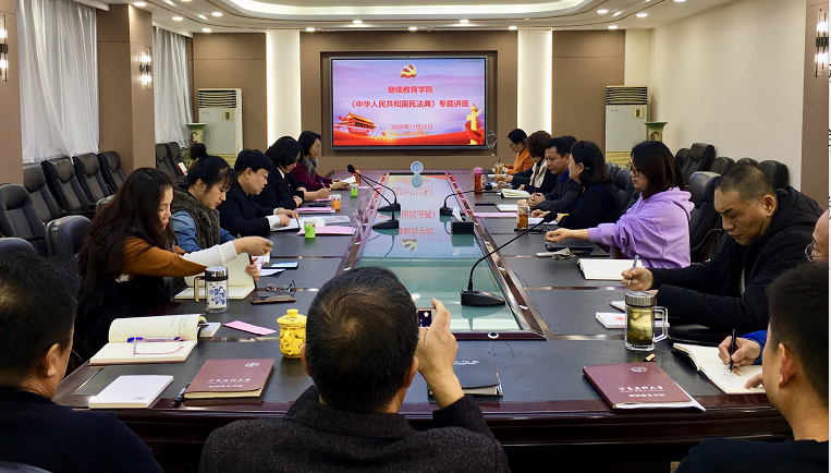 11月25日,继续教育学院党总支开展学习宣传《中华人民共和国民法典》专题讲座,邀请金凤区人民法院审判员、民三庭庭长冯芳作民法典专题辅导,全体党员及教职工参加了讲座。