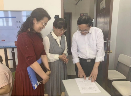 学校校长孙涛、副校长刘志宏与张艳丽老师就智慧教学相关情况进行交流探讨