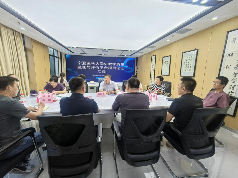 为深入贯彻落实学校关于推动人工智能与教育深度融合的决策部署,加快推进学校教育数字化转型,提升教学质量监测与评价的科学化、智能化水平,切实做好2026年中地项目的项目申报工作,2025年9月8日下午,教师发展与教学质量监控中心在正德楼322会议室组织召开了“AI教学质量监测与评价平台”项目论证汇报会。会议由教师发展与教学质量监控中心主任唐利龙主持,数智建设与管理中心负责人,督导专家及部分师生代表参会。