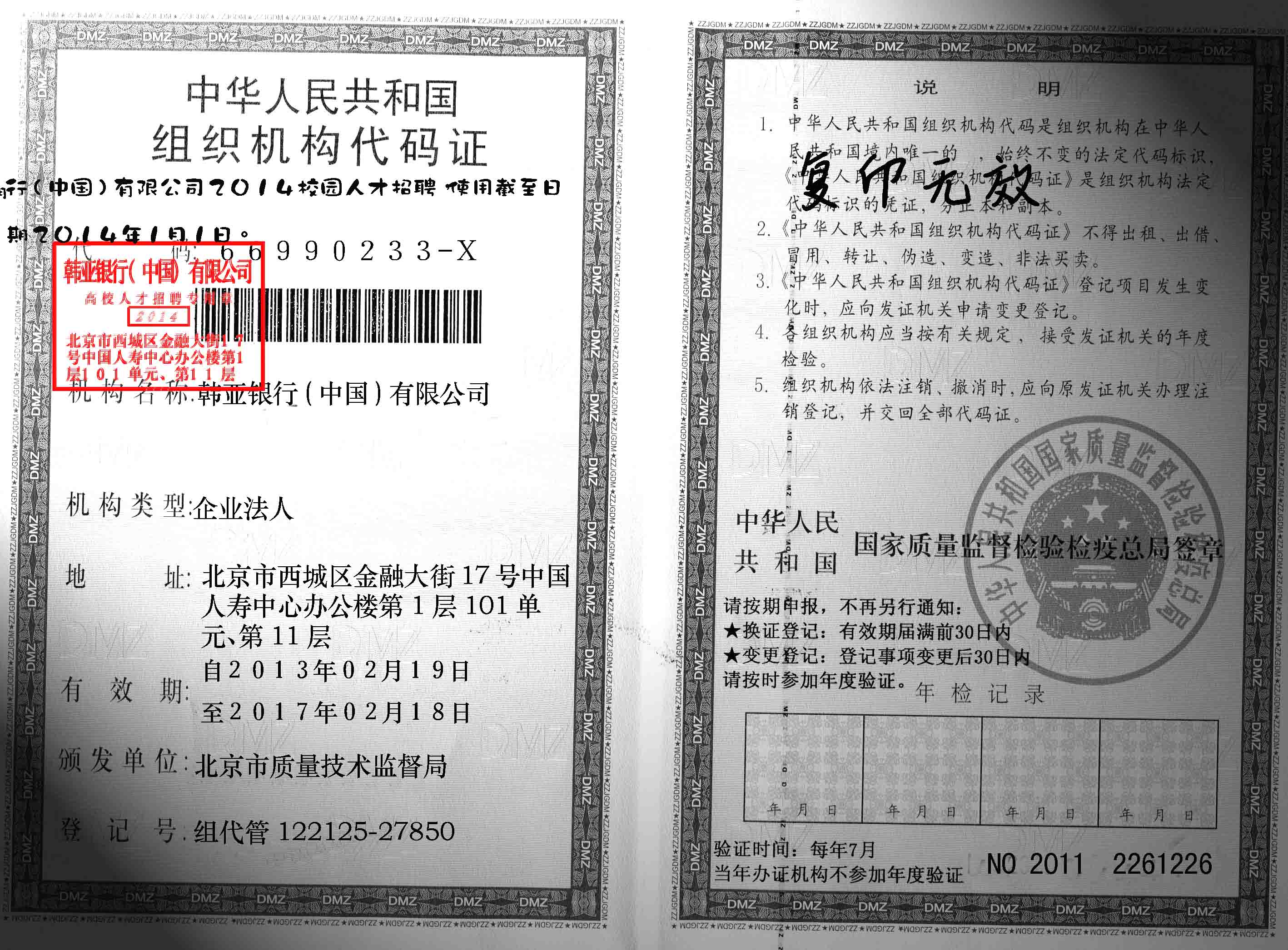 韩亚银行(中国)2014校园招聘信息