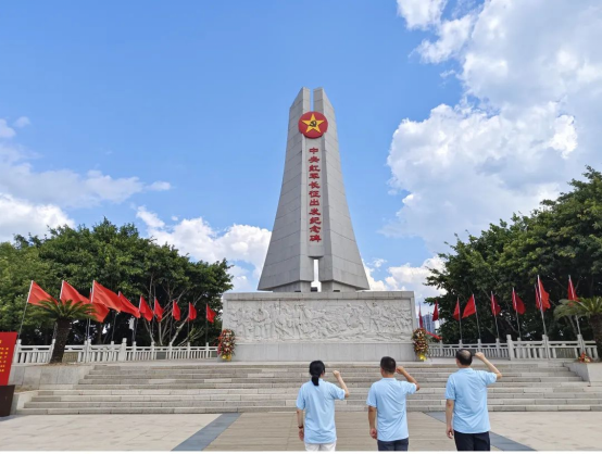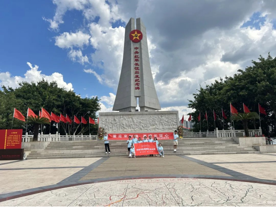 7月16日,实践团动身前往于都,重走习近平总书记在于都的考察路线。第一站,实践团来到了中央红军长征出发纪念园,临江矗立的中央红军长征出发纪念碑在阳光的照耀下熠熠生辉,纪念碑碑身为双帆船造型,象征着中央红军从此扬帆出征。碑座上的三幅巨型浮雕,分别以“集结”“出发”“奉献”为主题,雕刻着中央红军渡河出发的八个主要渡口,这是一座信仰的丰碑,也是于都这片红色热土上最闪亮的“精神坐标”。实践团中三位党员在此重温入党誓词,一枚枚党徽闪烁着金色光芒,在党员的心里力重千钧,“我志愿加入中国共产党,拥护党的纲领,遵守党的章程……”,一声声铮铮的誓言,久久回荡、震撼人心。