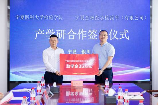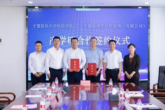 5月16日下午,检验学院与宁夏金域医学检验所(有限公司)产学研合作协议签约仪式在雁湖校区举行。学校党委常委、副校长张立杰,金域医学集团总裁助理、华中区域总经理谷晓辉,宁夏医院协会临检专委会主任委员、伟德国际1946源于英国总医院医学实验中心副主任李锋,宁夏金域医学检验所(有限公司)总经理张其润一行,学校科学技术处、教务处、对外合作交流处负责人和检验学院师生代表参加了签约仪式。