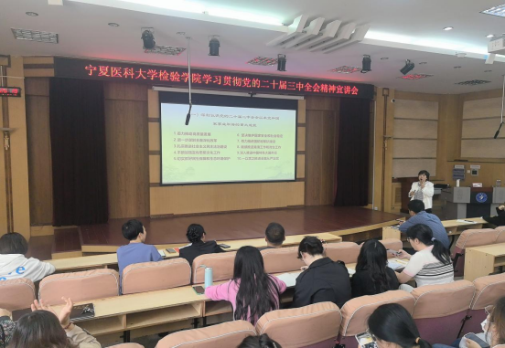 2024年9月13日,检验学院党委召开学习贯彻党的二十届三中全会精神宣讲报告会,马克思主义学院马红艳博士作专题讲座。学院领导班子、全体教职工及学生代表参加。
