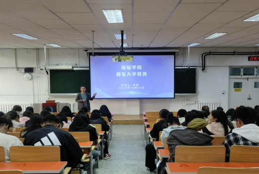 学院党委副书记纪文武老师以《新起点新征程新奋斗》为题,围绕思想政治、学风考风、学业规划、行为养成、诚信感恩、心理健康、安全法治、就业创业等内容为新生开展开学第一课,帮助新生们了解了大学的教学模式和学习方法,引导学生以崭新面貌开启大学生活、以奋斗姿态迎接新挑战、以实际行动书写新答卷。